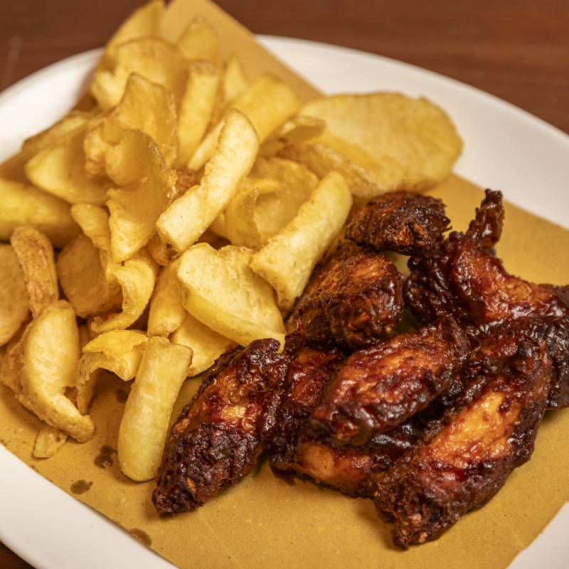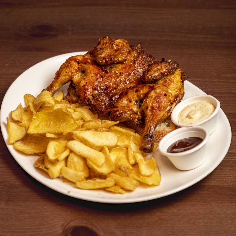 PIU' PICCANTE! con salsa bbq+tramvai, pane tostato , patatine fritte